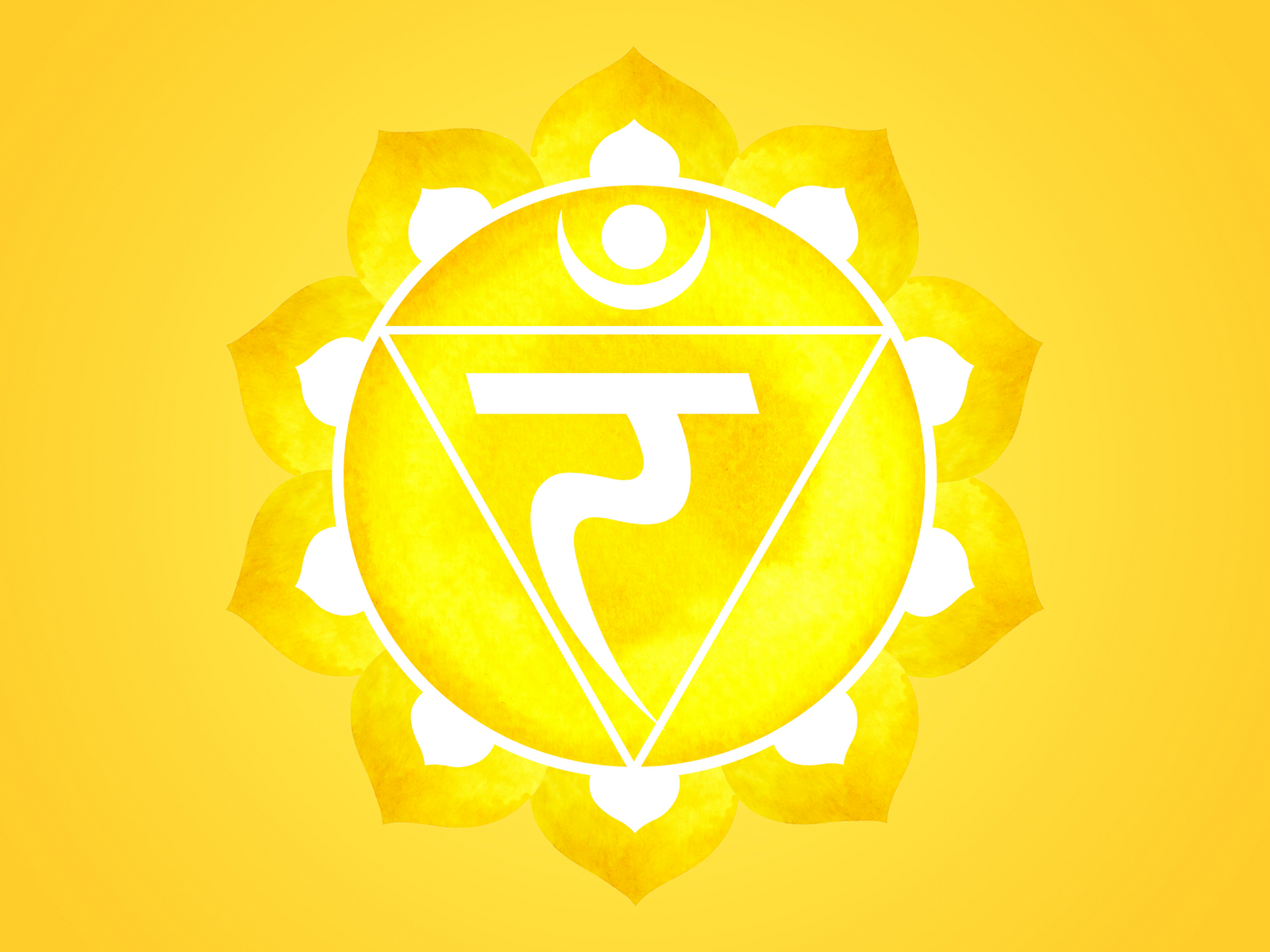 The Solar Plexus Chakra, also known as Manipura in Sanskrit (or the "city of jewels"), is the third chakra in the body's energy system located above the navel, in the upper abdomen. It resonates with the color yellow, the fire element, the E note, and the frequency of 528 Hz. Its symbol is a yellow ten petaled lotus flower with a downward-pointing triangle. The triangle represents the fire element and the transmission of receiving cosmic energy and sending it out into the world. The petals symbolize the unfolding of the Divine within you.