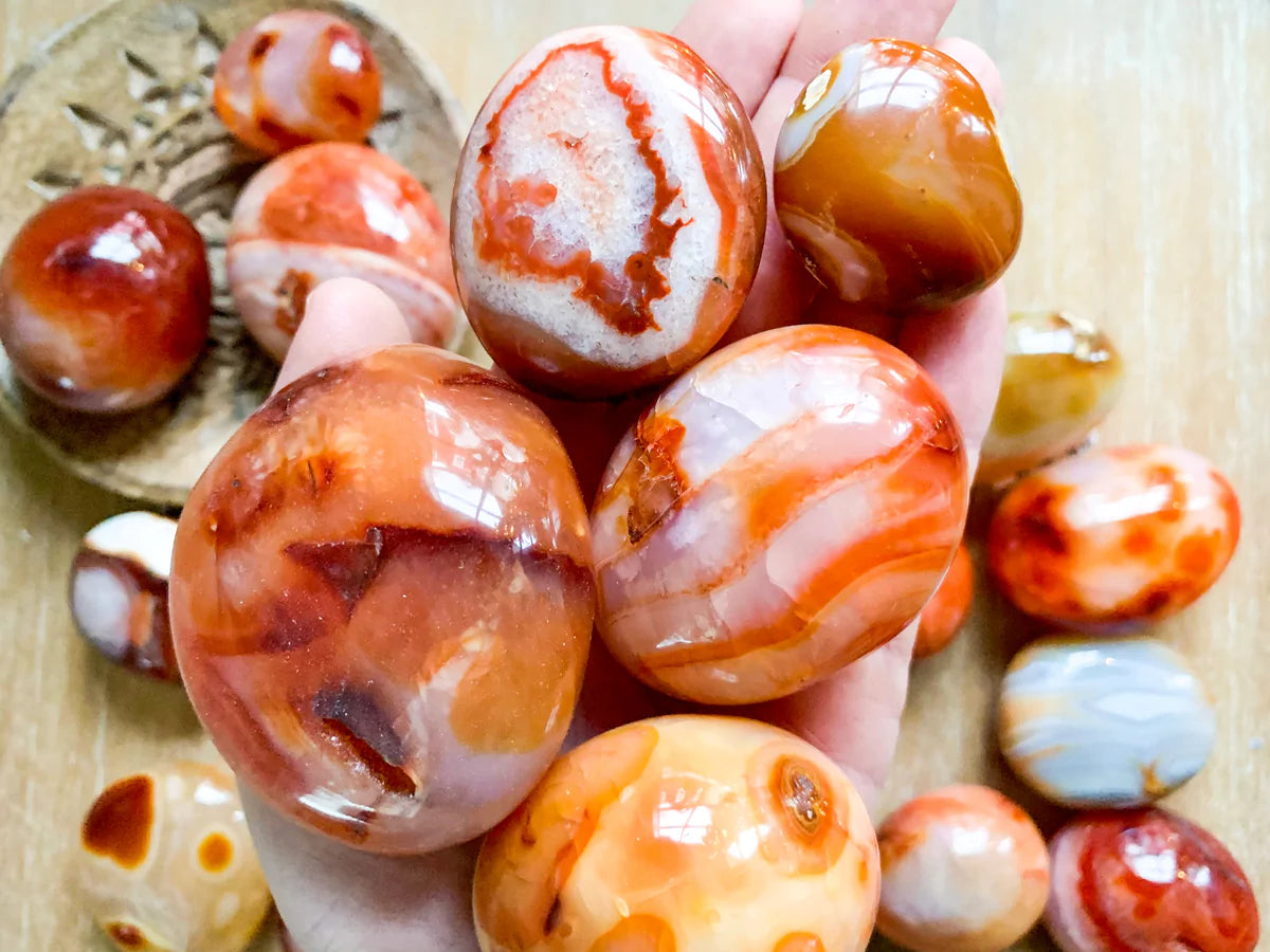 Carnelian, also known as the "Artist’s Stone," helps to manifest creativity and motivation! If you're experiencing the dreaded "writer's block," work with Carnelian to open up the channels of inspiration and tap into your own creative muse. Its warm, vibrant energy will boost your confidence and the power of your true expression. Meditating with a palm stone or building a crystal grid with tumbled stones can reignite the artist within. Place a piece near your work space or sleep with it to inspire your creations and colorize your dreams.