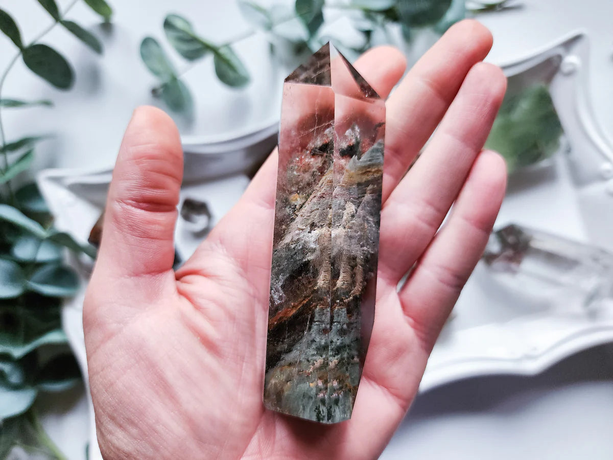 Garden Quartz, also known as Lodolite or Scenic Quartz, contains inclusions of other minerals, which in turn creates beautiful landscapes within the stone! These inclusions can resemble gardens, landscapes, or underwater scenes, hence the name Garden Quartz.
